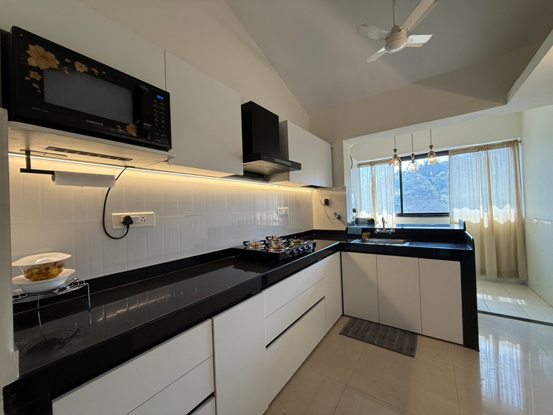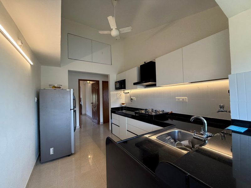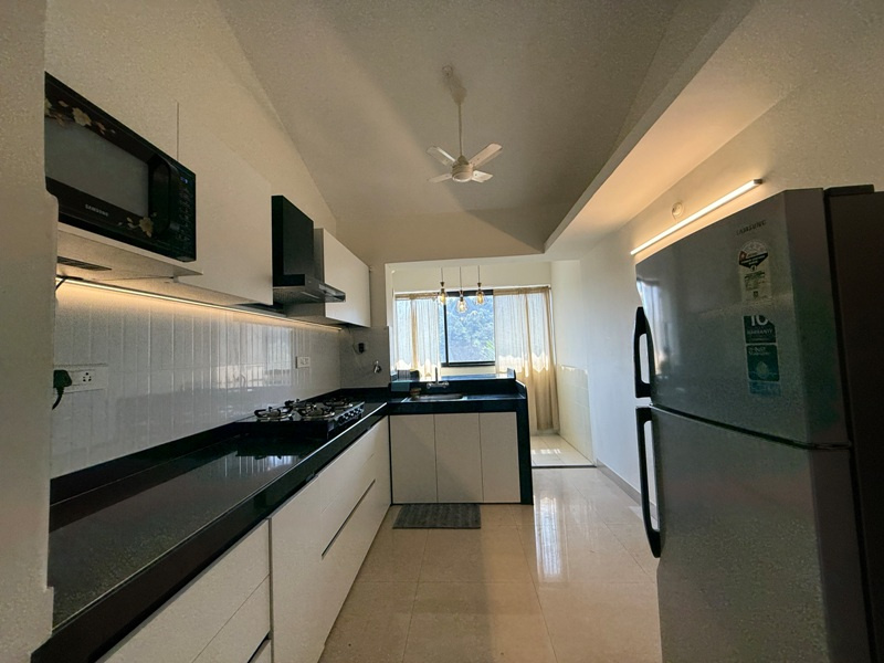 Furnished with Spilt A/c, Led Tv, Sofa set, dining table with 6 chairs, double beds with mattresses, wardrobes, Modular kitchen with chimney, 4 burner gas stove, double door fridge, microwave, washing machine etc.