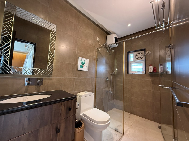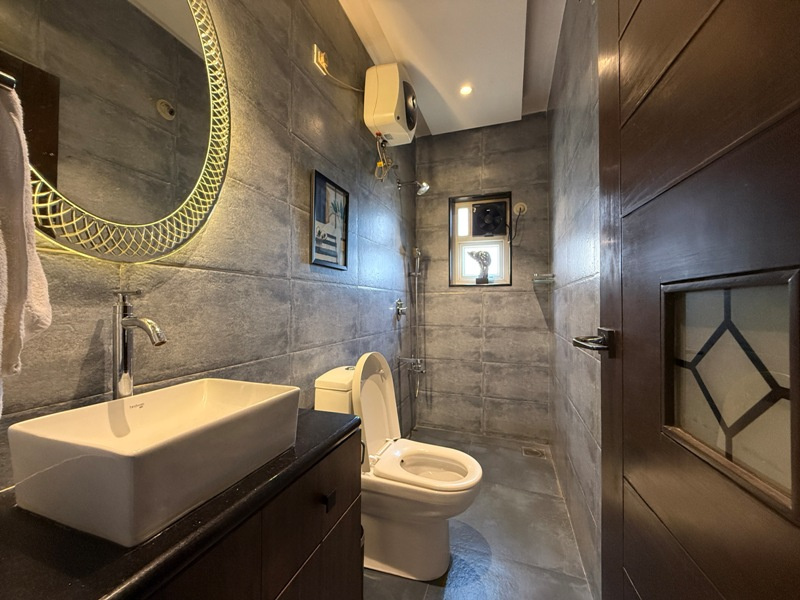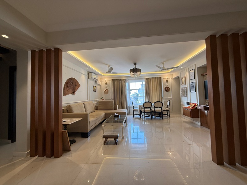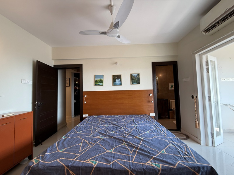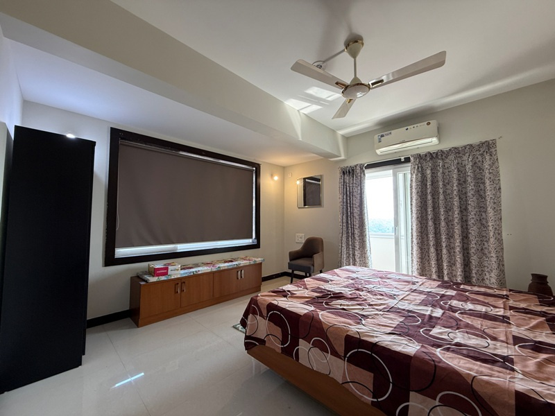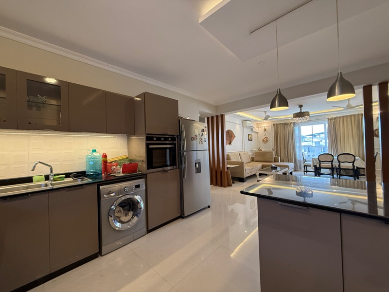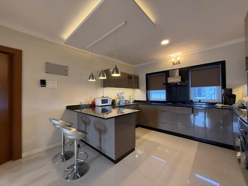 Luxury furnished with Split A/c, Sofa set, dining table with 6 chairs, Double beds with mattresses, wardrobes, modular kitchen, chimney, Microwave, refrigerator, washing machine, geyser etc.
