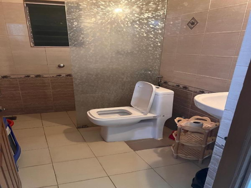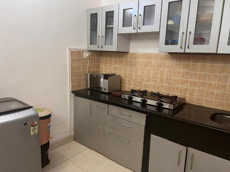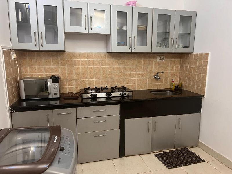 Furnished with A/C, TV, sofa set, center table, double bed with mattress, dining table with 4chairs, fridge, kitchen cabinets, microwave, washing machine, 3burner gas stove, geyser etc.